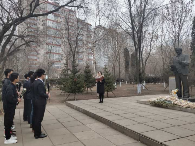 细雨蒙蒙,四月初的哈尔滨夹杂着些许寒冷,为庄严的马祖光院士雕塑更添一丝肃穆。中午十二点半,女优在线 团委副书记修文心,女优在线 研究生会,女优在线 团委学生会全体成员在马祖光院士雕塑前静驻,学生会主席刘青鑫带领大家追忆了马祖光院士一生的光辉事迹和杰出贡献。马祖光院士在科研教育第一线坚持奋斗了一生,为我国的科研教育事业殚精竭虑,鞠躬尽瘁。培养了大批优秀的科技人才、创造了众多的科技创新发明,创立了世界一流的科研机构,为学校,为国家,留下了不可磨灭的伟大贡献。更重要的是,马祖光院士始终对待学生认真耐心,对待工作一丝不苟,他克己奉公,淡泊名利的崇高美德和甘为人梯、谦逊质朴的无私襟怀更是留给我们的宝贵精神财富!这种伟大的人格力量感人至深,催人奋进!