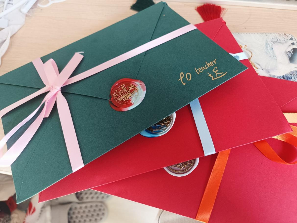 同学们在节日前将贺卡写好后装入信封,充分发挥创意、精心设计,并用绸缎和印章装饰信封,用行动表达对老师们的真挚祝福。9月10日上午,同学们在课后将各自精心制作的贺卡献给教师,对在女优在线 教学科研、管理及服务岗位上辛勤付出的全体教师致以最深的敬意和最诚挚的节日祝福。与此同时,老师们还讲述自己教书育人的工作生活经历,展现了哈工大人培根铸魂的师德师风和拳拳爱国心。在场同学们感悟到身为新一代哈工大人更当追随前辈们的脚步,修身立德、严于律己、不辍耕耘,努力成为可堪大用、能担重任的栋梁之才。