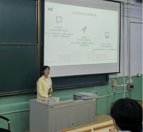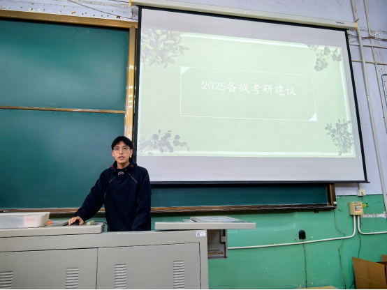 随后,辅导员迟潇雨老师详细解答了同学们关于升学、就业等相关问题,并详细介绍了前两届本硕同学的毕业去向及就业签约情况,对目前就业形势、升学去向进行详细分析,重点介绍了就业前期准备和签约流程,并鼓励大家积极准备、把握机会。其中特别提示计划考研的同学要注意时间节点、积极规划、稳住心态、全力复习,学院也将充分给予支持和指导。还介绍了包括选调在内的各类就业信息获取渠道,生源信息审核、就业推荐表、网上签约管理及违约政策等注意事项。此外,也就日常生活常见问题对同学们提出要求,包括网络文明、请假离校、寝室卫生、人身安全、诚信教育、反诈宣传等。迟潇雨老师还邀请了三名学院培养升学的硕士代表,结合自身经历向同学们提出了一些关于考研的意见建议,也介绍了硕博生活。他们号召大家做好个人规划,积极行动。