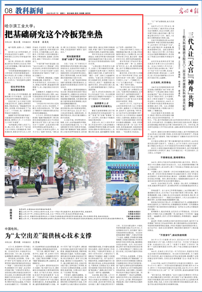 《光明日报》报道我校不断强化航天第一校“尖兵”作用发挥 加强基础研究的办学特色、经验和成果